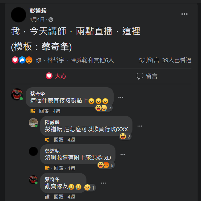課堂直播開始之前似乎在 fb 上有一些小插曲(?
