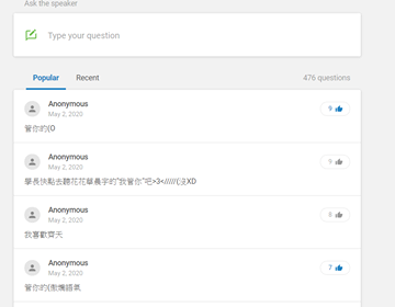 然後 slido 上也有一堆莫名其妙的留言 XD